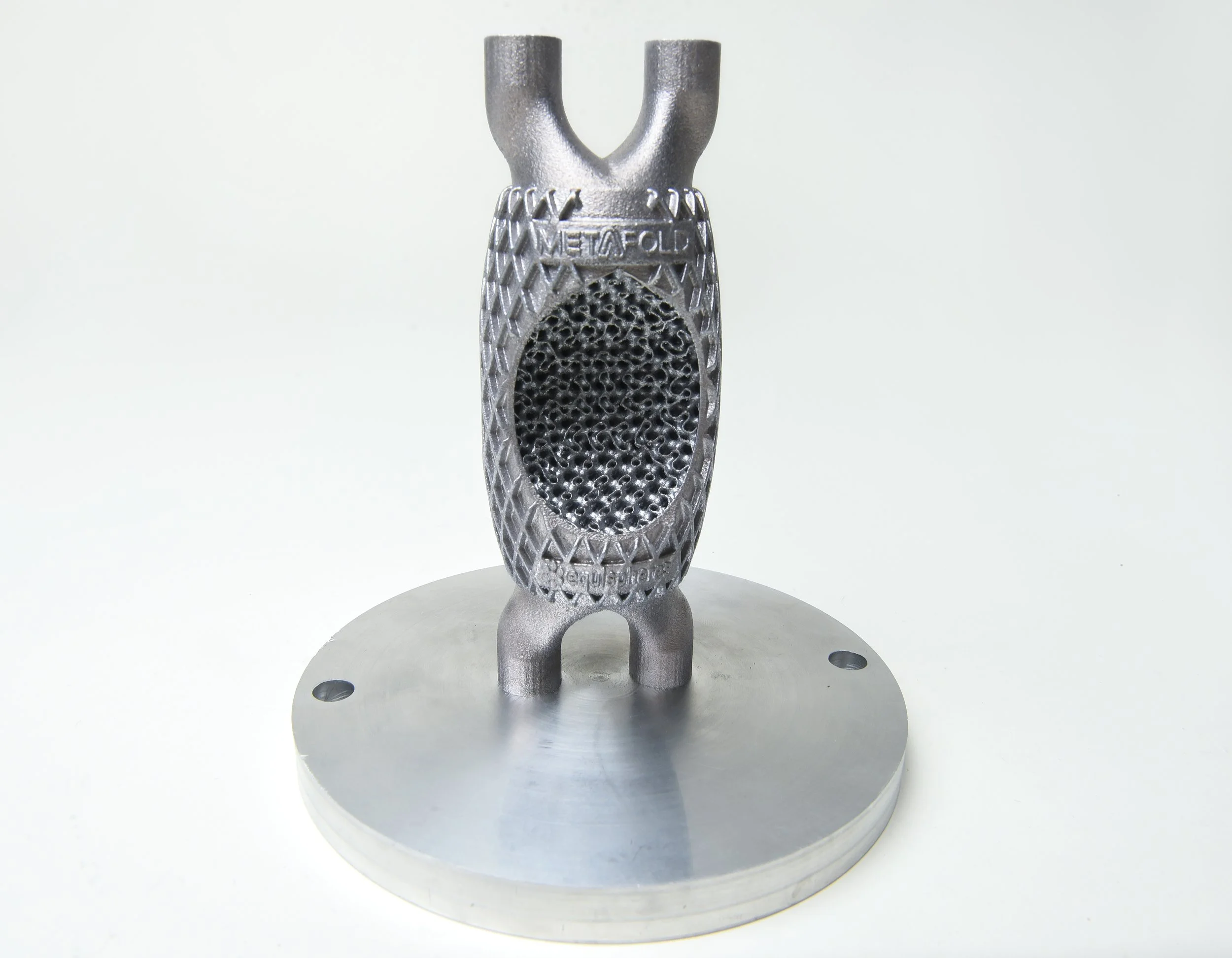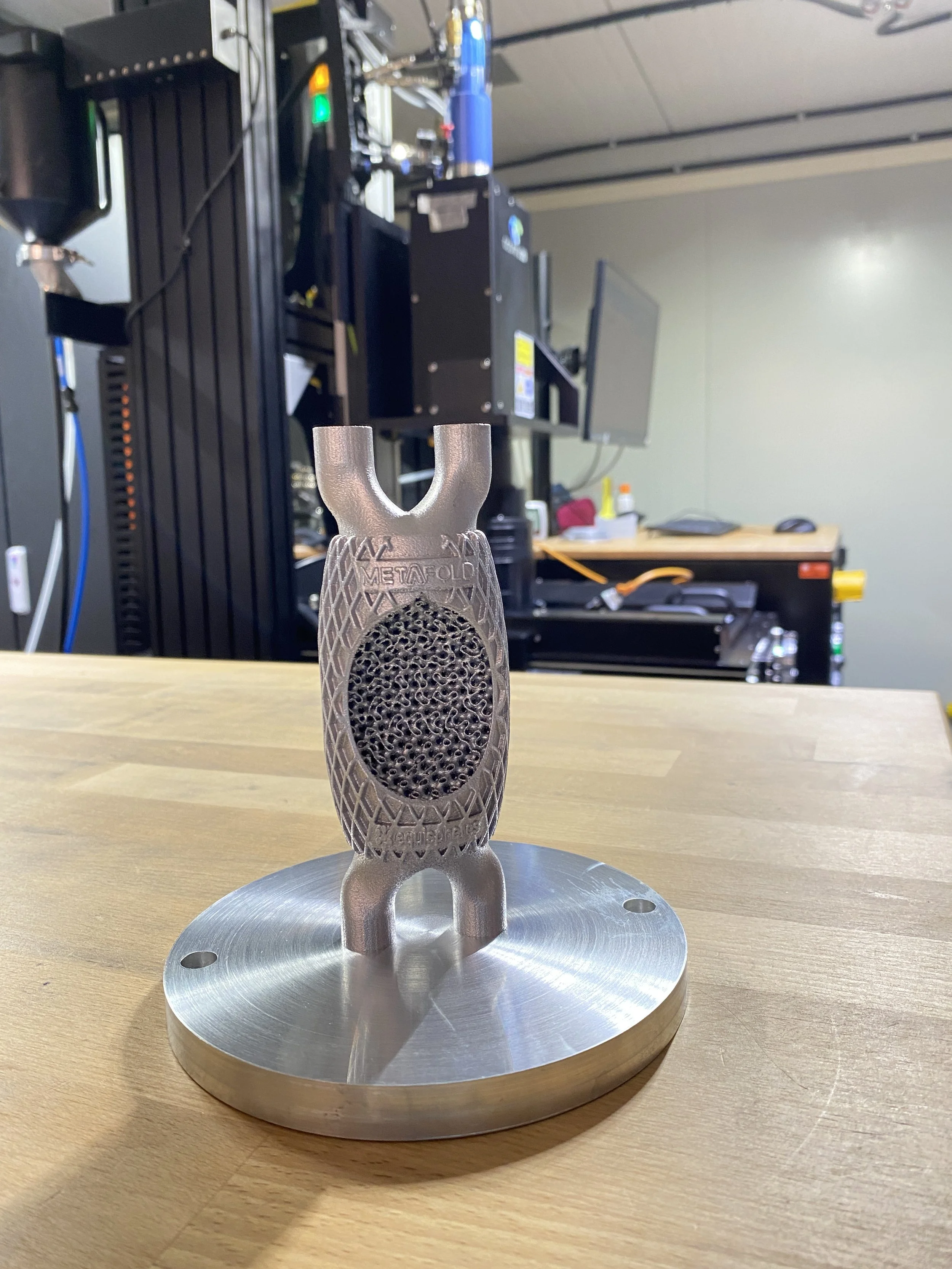 The heat exchanger was produced on Equispheres’ in-house AconityMINI system, a compact Laser Powder Bed Fusion (LPBF) printer, using Equispheres’ NExP-1 AlSi10Mg powder. Printed at a 60 μm layer thickness and a build rate of 45 cm³/hr, the part required no post-processing beyond ultrasonic cleaning to remove excess powder. The result was a high-precision component that showcased excellent surface quality and the ability to print intricate features such as the internal gyroid lattice.