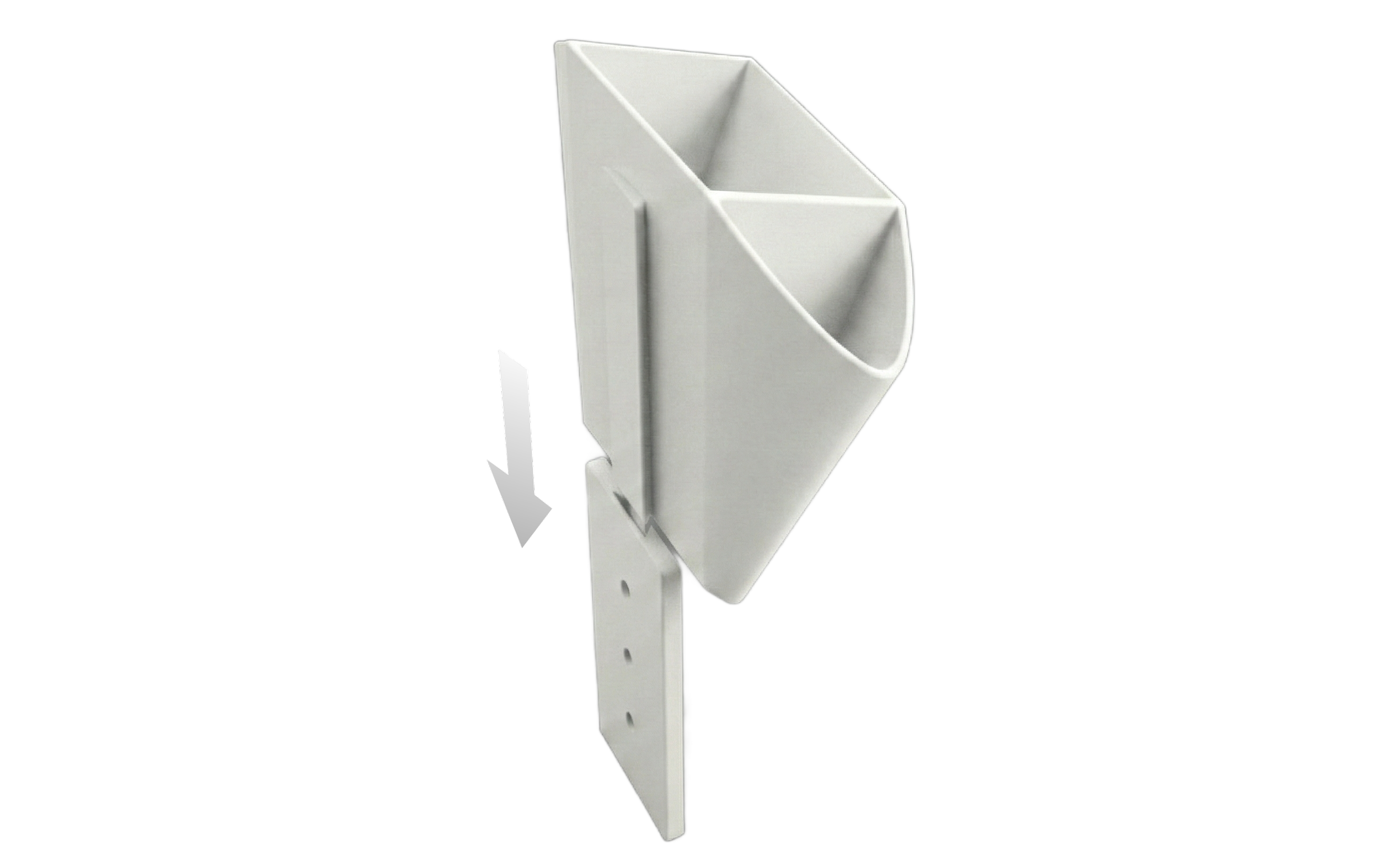 Wallmate features a straightforward sliding dovetail mechanism that makes installation quick and intuitive. The system can be mounted on the wall according to your preference, using either small screws or removable command strips. When needed, it can be easily detached for cleaning, combining convenience with flexibility for any kitchen setup.